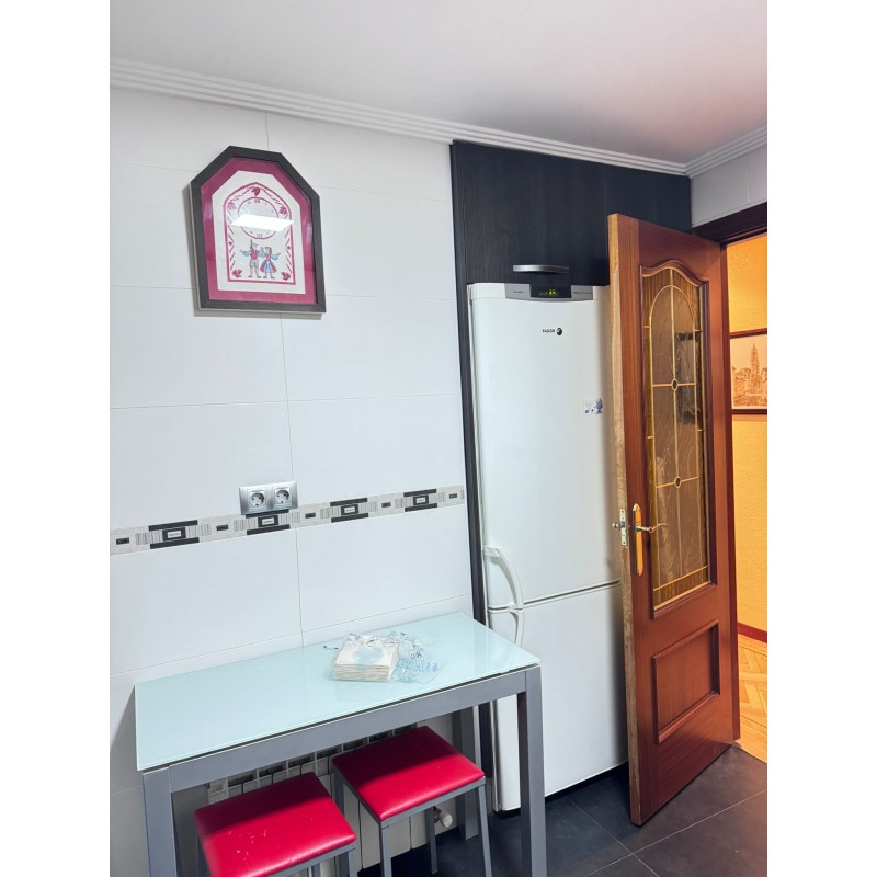Piso de tres dormitorios, dos baños, salón y cocina. Calefacción individual de gas natural. Incluido en el precio plaza de garaje y dos trasteros.